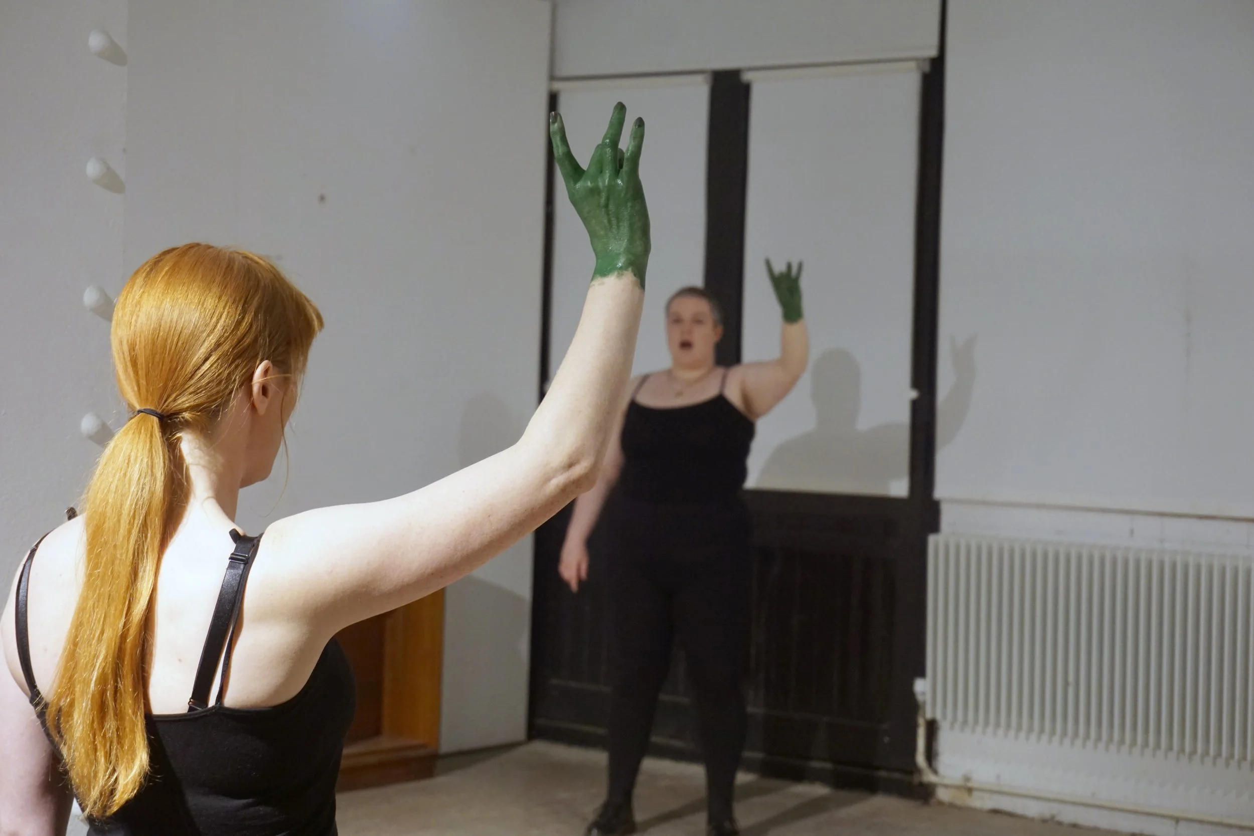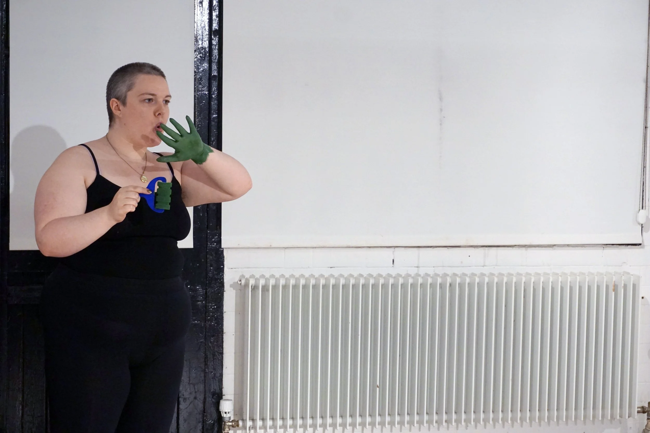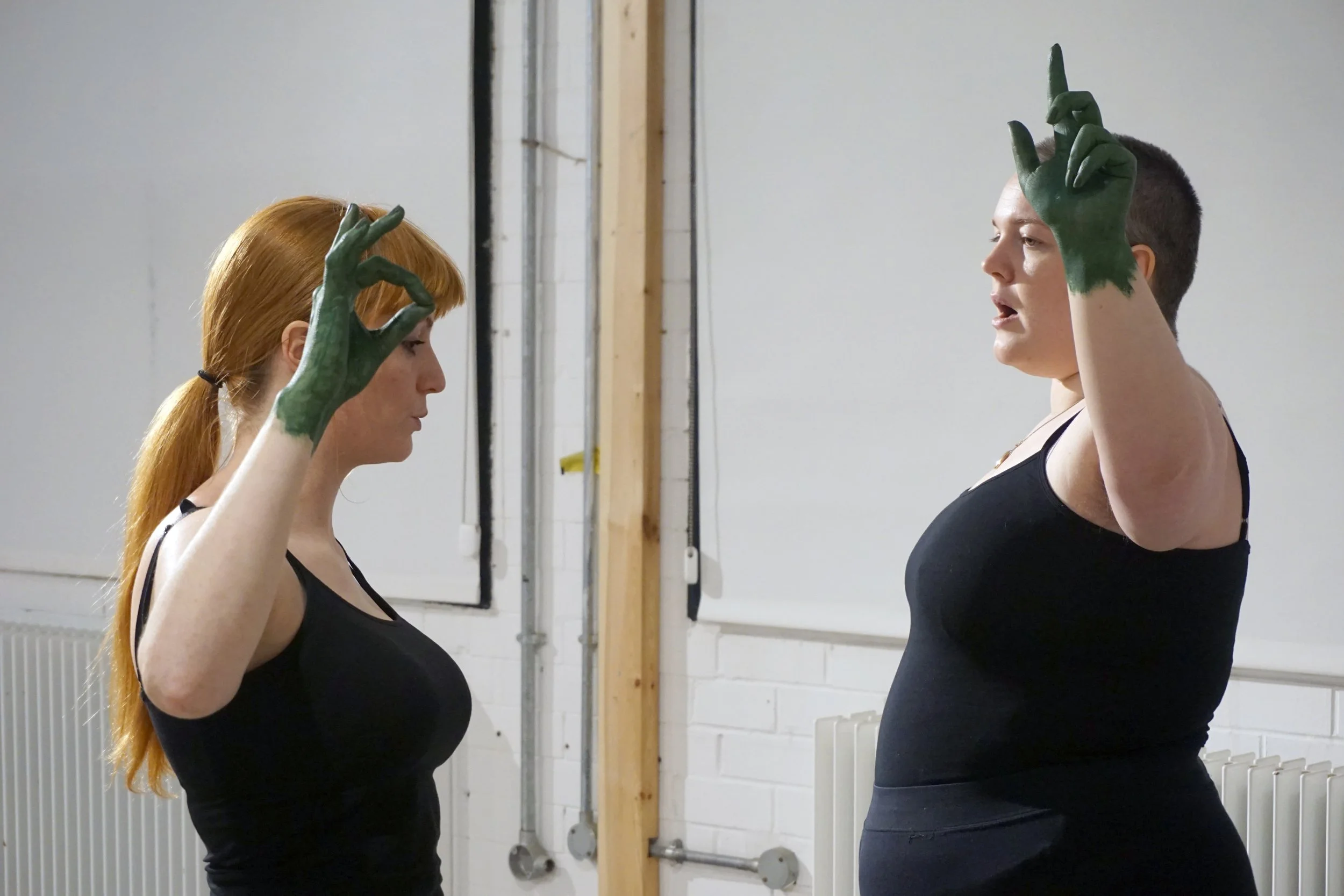 Puth Guth, which directly translates from Irish to Breath Voice, was a collaborative performance between artists Lynn-Marie Dennehy and Ciara Dawson at the Baltic 39 gallery space in Newcastle-Upon Tyne. The performance served as a protest or antidote against an oppressive Anglophone institution, particularly exploring the Irish diaspora experience. By focusing on breathing patterns and roman oratory hand signals, the performers communicated and navigated the space silently, rendering language obsolete and empowering themselves by its omission. By doing so, "Puth Guth" challenged traditional narratives and offered a fresh perspective on cultural displacement and resistance, reminding viewers of the power inherent in reclaiming one's voice.